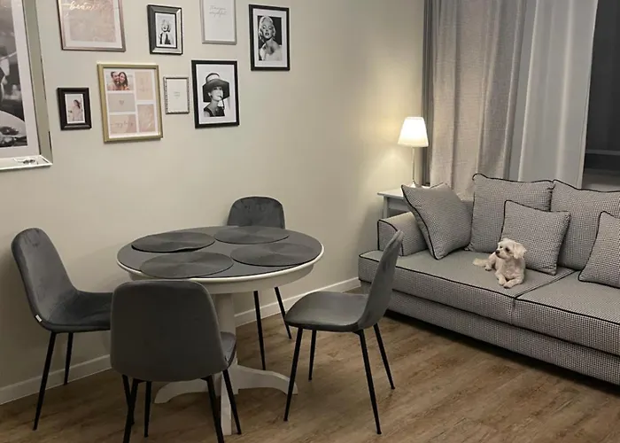 El Apartamento Przy Bloniach Szczecin tiene terraza y está situado a unos 25 minutos a pie de la Catedral de Santiago el Mayor. Este apartamento de 48 m² ofrece instalaciones modernas, como Wi-Fi y servicios esenciales como un aparcamiento para los que viajan en coche.